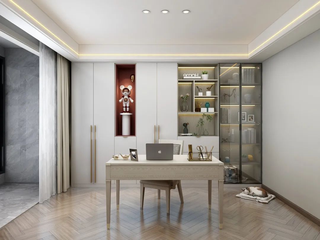 书房以和谐自然的材料,肌理化表现